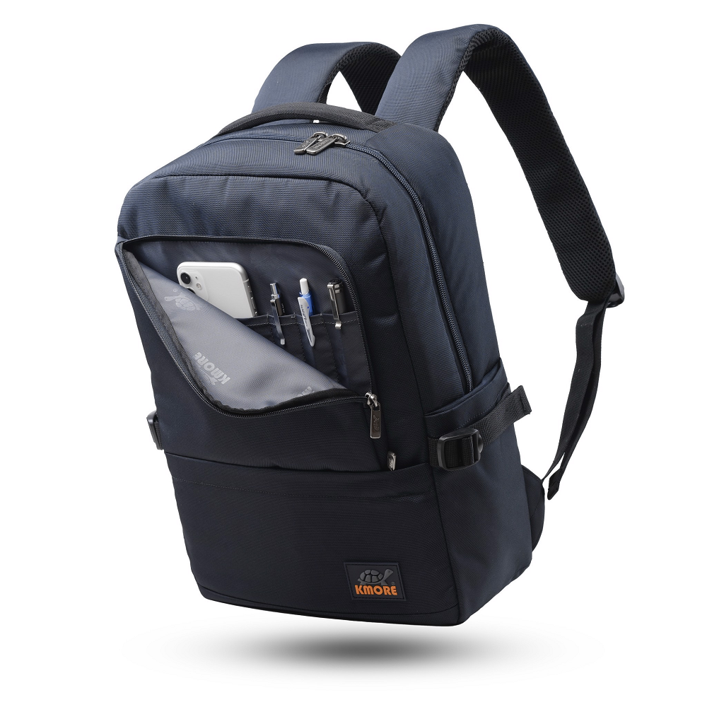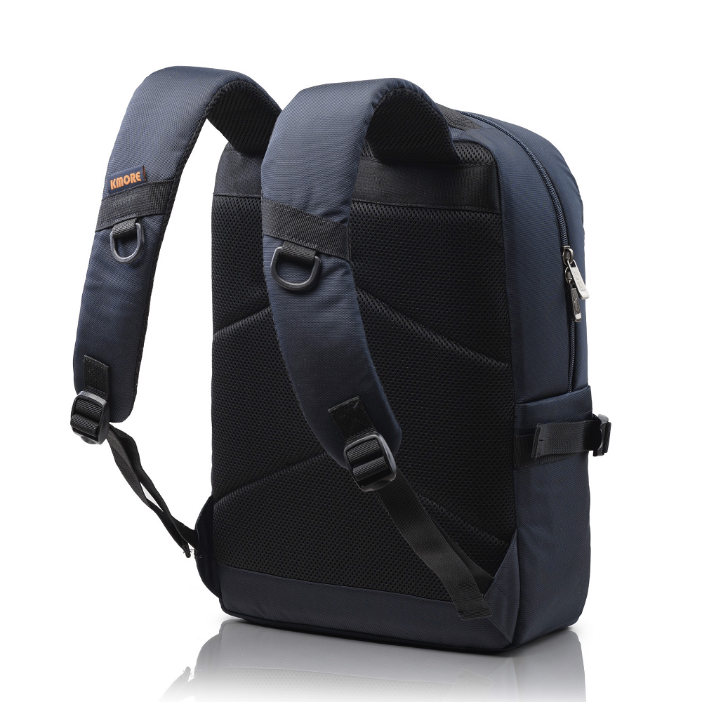 Quai xách đỉnh và quai đeo vai được đệm foam EVA và PE dày giúp bạn cảm giác thoải mái khi đeo hay xách balo cùng bạn hàng ngày. Mặt trước balo đính logo PVC biểu tượng thương hiệu KMORE..