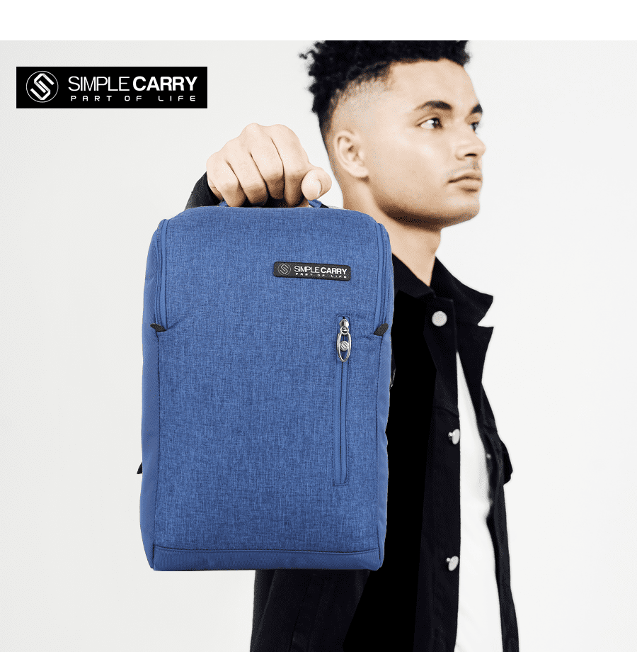 Mặt trước: 1 ngăn phụ với đầu khóa kéo nằm dọc, đính logo thương hiệu SimpleCarry