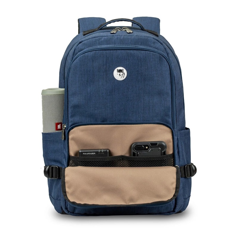 Logo balo Mikkor The Louie Mặt trước balo đính logo chú sói biểu tượng thương hiệu MIKKOR nổi bật.