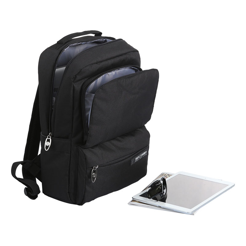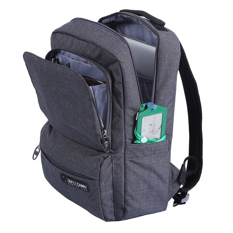 Số ngăn: 1 ngăn chính, 2 ngăn phụ Mặt trước: 2 ngăn phụ với đầu khóa kéo, đính logo thương hiệu SimpleCarry