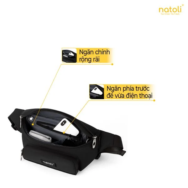 Ngăn lớn túi đeo chéo Natoli: Để passport, điện thoại, bặt lửa và các phụ kiện khác.