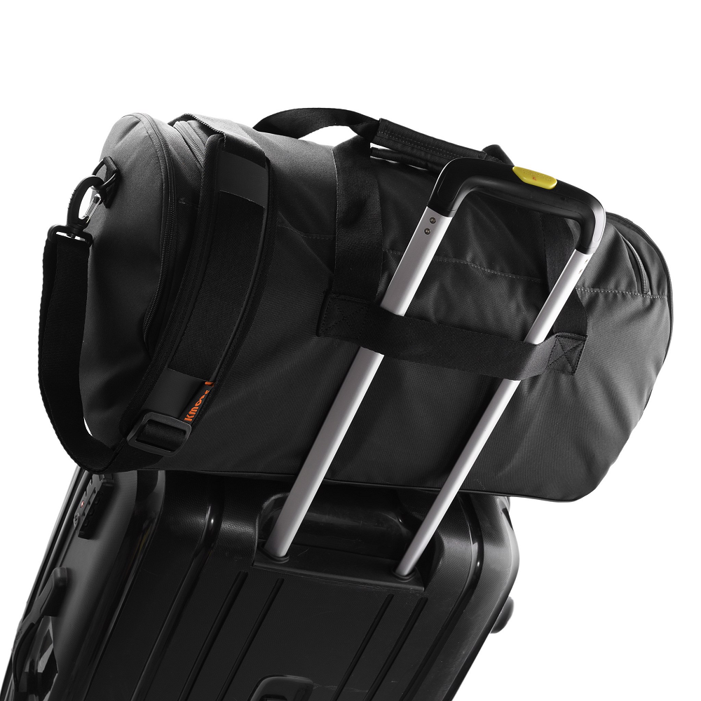 Logo chính thương hiệu được may nổi lên thân chính của túi. Phía sau túi được thiết kế một dây đai để gắn vào tay kéo va li, giúp cho những chuyến đi của bạn thêm tiện lợi và dễ dàng hơn.