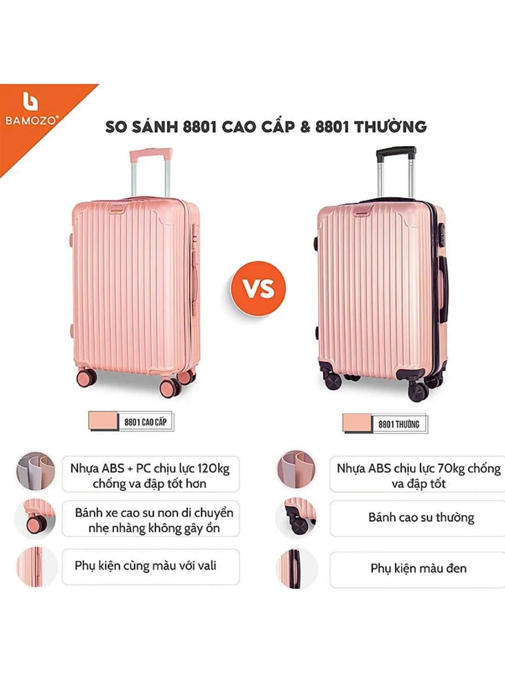 Chiếc vali kéo 8801 của Bamozo này sẽ là sự lựa chọn hoàn hảo dành cho những ai không muốn bỏ ra quá nhiều tiền để sở hữu cho mình một chiếc vali chính hãng có bảo hành lâu dài.