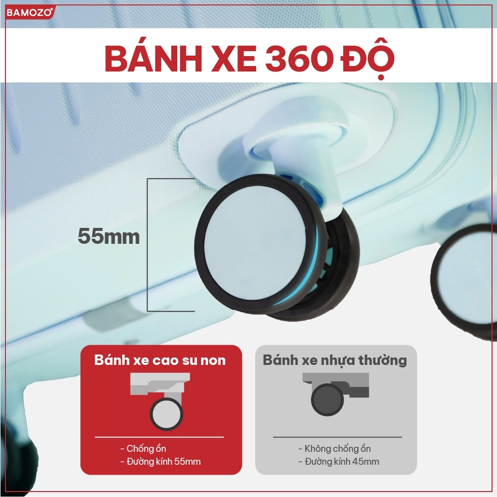 Vali Bamozo được sản xuất từ nhựa dẻo PC + ABS đàn hồi, chịu ngoại lực cực tốt, bề mặt hơi bóng nhẹ dẻo dai chống vỡ sang trọng