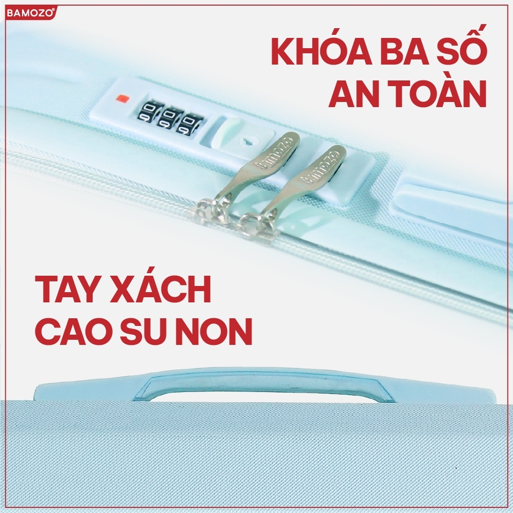 Vali kéo bamozo này sử dụng khóa zip đơn giản dễ sử dụng, tích hợp khóa mật khẩu 3 số an toàn, có thể đổi mật khẩu theo ý muốn